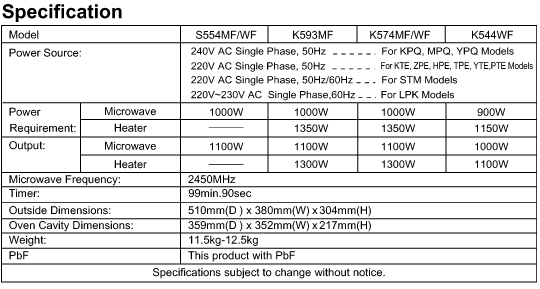 NN-S554MF NN-S554WF NN-K593MF NN-K574MF NN-K574WF NN-K544WF
