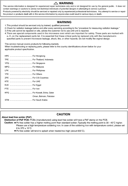 Please file and use this manual together with the service manual for Model NN-S553/K593/K573/K543 (ORDER NO. SIMMC0306022C3).